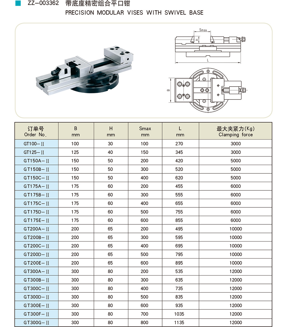 - Clamping Force: 3000 to 12000 Kg — reliable securing power.